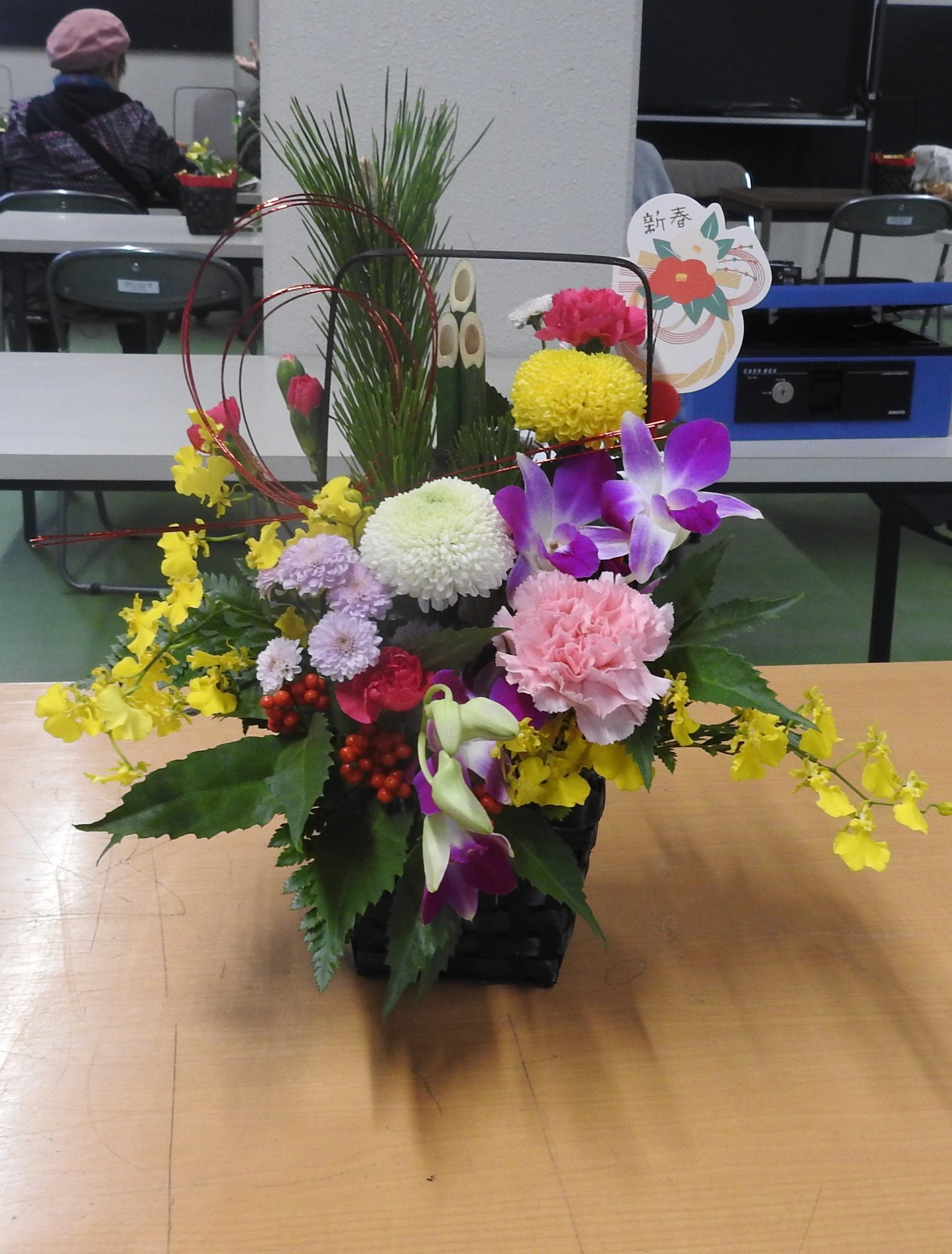 お正月らしい素敵なフラワーアレンジで飾り花が完成しました